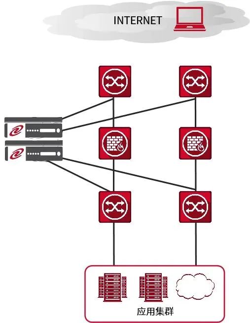 由于用户数据中心已经部署完毕,所以负载均衡设备旁路模式部署,拓扑图如下:
